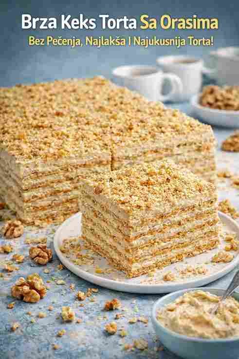 Ova brza keks torta sa orasima je dokaz da jednostavni recepti mogu biti nevjerovatno ukusni. Bez pečenja, bez komplikacija – samo čisti užitak u svakom zalogaju! 🍰