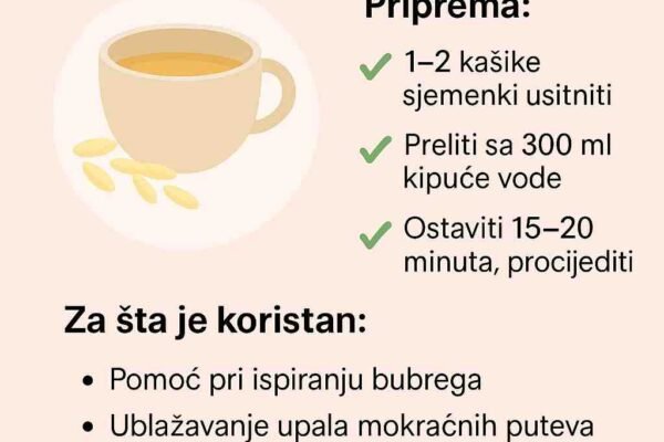 Kako napraviti: ➤ Pomiješajte ¼ šolje naribane cvekle + ¼ šolje vode + 1 kašičicu limunovog soka ➤ Procijedite i odmah popijte svježe Kako koristiti: ➤ Uzimajte na prazan stomak svako jutro tokom 5 danaBonus savjet: Dodajte 1 malu mrkvu za dodatni vitamin A i sjaj kože Sigurnosni savjet: Nemojte ga čuvati – uvijek konzumirajte…