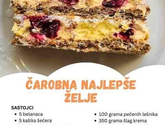 Torta koja nosi ime “Čarobna najlepše želje” predstavlja pravo čudo u svetu poslastica. Njena bogata tekstura i fantastičan spoj sastojaka čine je savršenim izborom za svaku priliku. Bilo da je poslužujete za neki specijalan događaj, kao slavljeničku tortu ili jednostavno kao slatki užitak za vaše najmilije, ona će sigurno ostaviti snažan utisak. U nastavku ćemo…