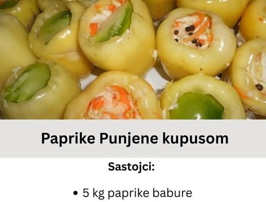 Potrebni sastojci: – 2 kg paprika – 100 ml maslinovog ulja – 100 ml sirćeta (9%) – So (po ukusu) – Beli luk (po ukusu) – Svež peršun (po ukusu) Priprema: Očistite paprike od stabljika i semenki, a zatim ih poređajte na pleh obložen papirom za pečenje. Zagrejte rernu na 250°C. Pecite paprike 20…