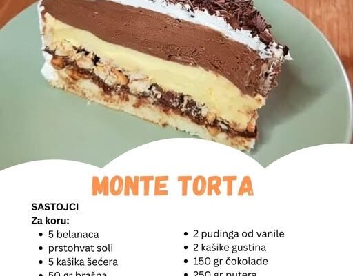 SASTOJCI Za koru: 5 belanaca prstohvat soli 5 kašika šećera 50 g brašna 150 g pečenog, seckanog lešnika Za fil: 5 žumanaca 1 l mleka 200 g šećera 2 pudinga od vanile 2 kašike gustina 150 g čokolade za kuvanje 250 g putera sobne temperature Dodatno: 200 g nutele 100 g keksa (lomljenog)…