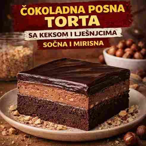 Ova čokoladna posna torta sa keksom i lešnicima je jednostavna za pripremu, a pruža savršenu kombinaciju sočnosti, hrskavosti i bogatog čokoladnog okusa. Idealna je za sve koji žele impresivan posni desert koji će zadovoljiti i najzahtjevnije goste.