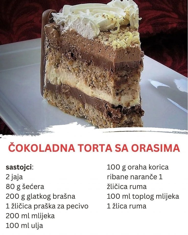Ova torta je klasik – moćna, puna ukusa, a zahvaljujući orasima, ima onu starinsku dubinu i teksturu koju moderne torte često nemaju. Uz šolju jake kafe, svaki zalogaj je savršen.