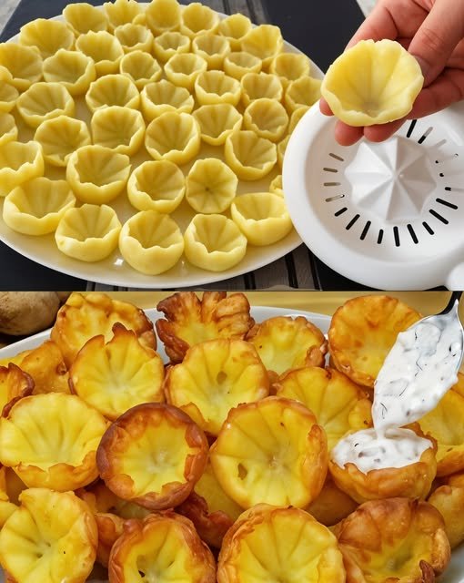 Da biste stvorili oblik krekera, počnite laganim namazanjem rozete sokovnika za limun ili sličnog rebrastog kalupa. Svaku kuglicu krumpira treba čvrsto pritisnuti na nauljenu ružicu, pazeći da se oblikuje tanjir s unutarnjim rebrima. Ovaj poseban korak je bitan za prenošenje prepoznatljive teksture krekerima i omogućuje im da se privlačno napuhnu tijekom procesa prženja.