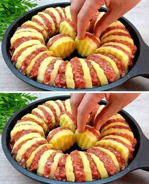 - U posudu za pečenje u slojevima poređajte mleveno meso i krompir.