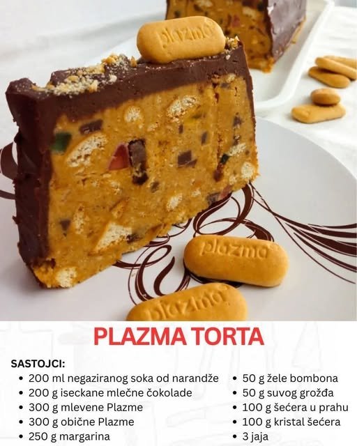 Ako tražite jednostavan i ukusan desert koji se brzo pravi, a ipak izgleda i miriše kao da je iz poslastičarnice, Plazma  torta je pravo rešenje. Ova torta kombinuje prepoznatljivu hrskavost mlevenih  keksa sa bogatim, kremastim filom i čokoladnom glazurom.