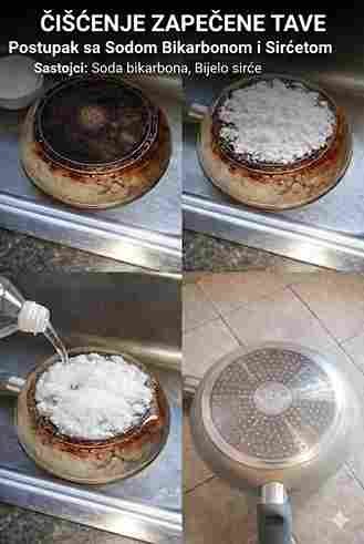 • Ova kombinacija je prirodni abraziv i rastvara zagorjele ostatke, a tavu čini sjajnom.