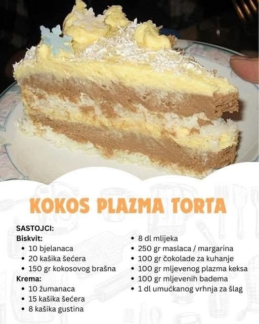 Kokos plazma torta – predivna tortica, ne previše slatka, jednostavna za pripremu…