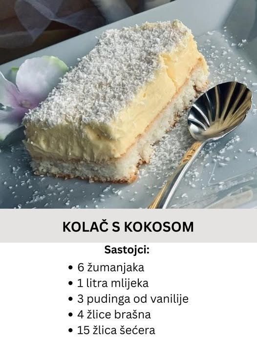 KOLAČ S KOKOSOM I KREMOM OD VANILIJE: Sočan, kremast i preukusan.