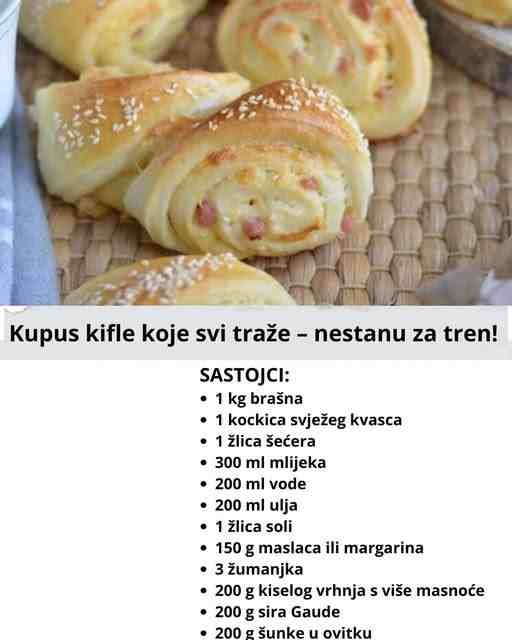 Vrlo ukusne i mekane Kupus kifle uvijek su dobro došle u svim prilikama, a tko god ih je probao odmah je zatražio recept. Punjene su salamom i sirom, a vi možete ubaciti nešto i po vašoj želji, poput kobasice, kulena i sl.