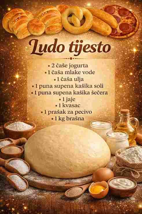 Lud0 test0 je univerzalno, jednostavno i praktično testo koje možete koristiti za sve vrste peciva, bilo da su slana ili slatka. Njegova posebna receptura omogućava da svako pecivo bude meko, sočno i savršeno pečeno, bez komplikovanih procesa i višesatnog čekanja.