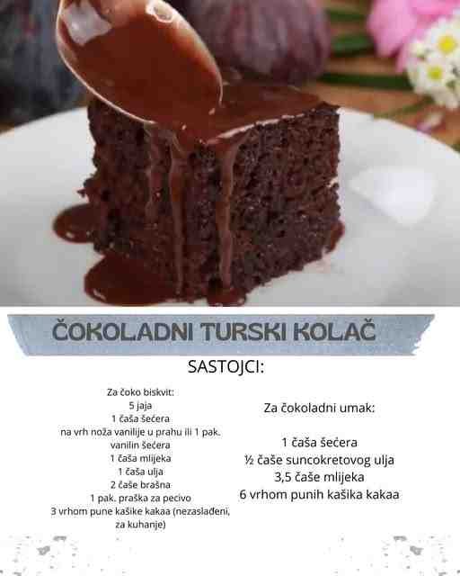 Pripremila sam vam odilčan i sočan čokoladni Turski kolač, toplo ga preporučujem.