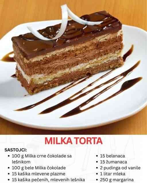 Za dekoraciju Milka torte koriste se šlag i gazirana voda, ili alternativno, topljena čokolada. Potrebno vam je 200 g šlaga i 3 dl gazirane vode.