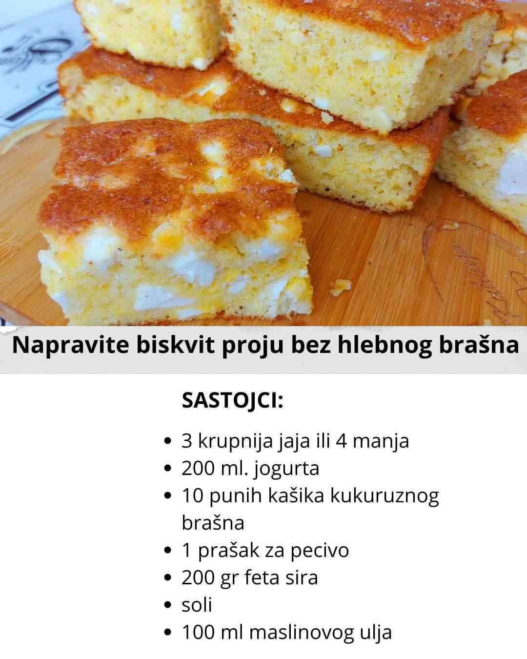 Umutiti prvo belanca kao za tortu, dodati kukuruzno brašno sa praškom za pecivo, žumanca, ulje, sir jogurt i sve polako dobro izjednačiti.