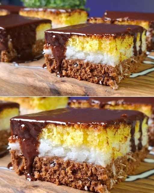 Kada mlijeko počne da ključa, polako umiješati smjesu s gustinom. Kuhati uz stalno miješanje dok se ne zgusne poput pudinga. Skinuti s vatre i dodati kokosovo brašno. - Slaganje slojeva: