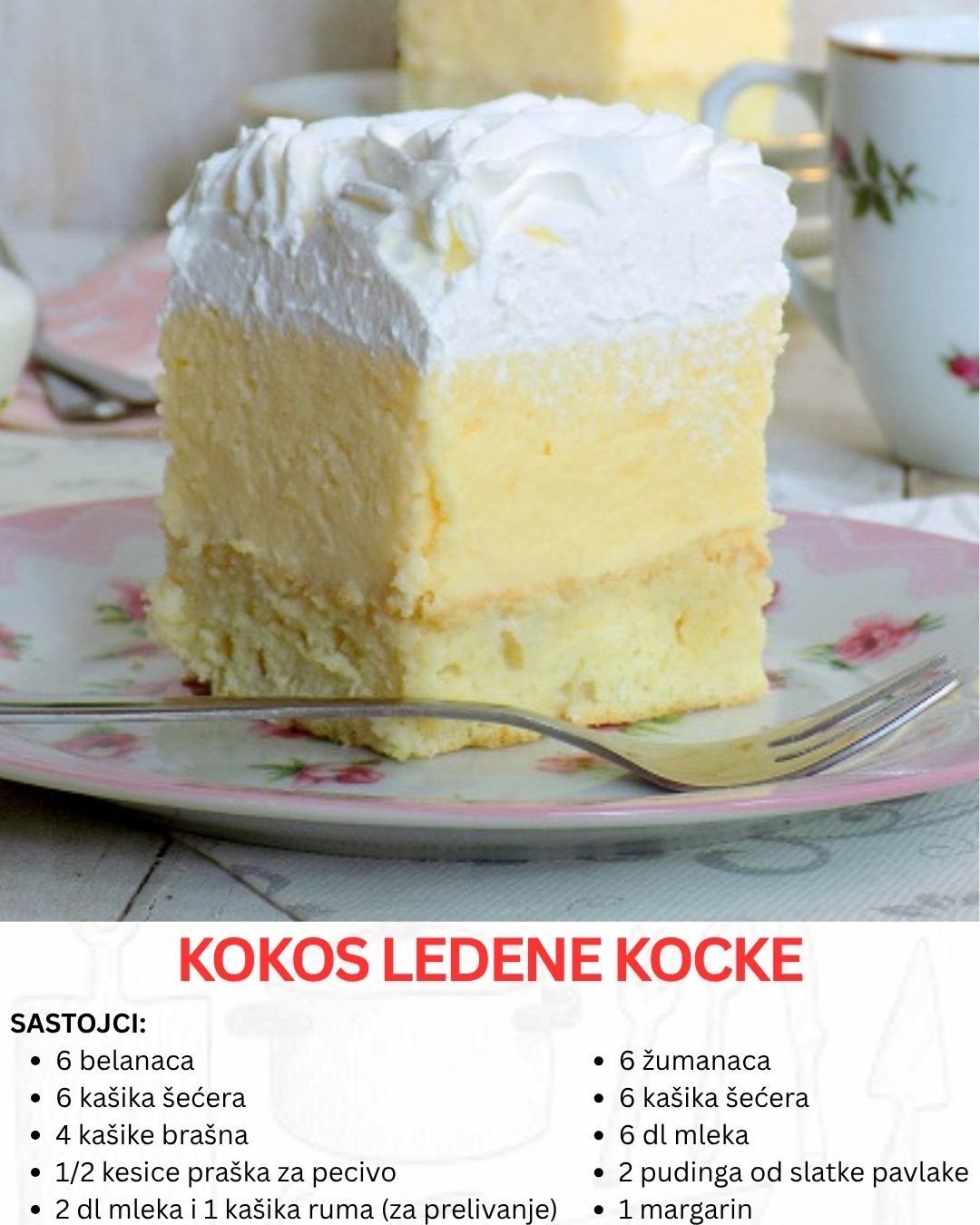 U svetu poslastica, postoje kolači koji osvajaju na prvi pogled, a zatim i na prvi zalogaj. Jedan od takvih dragulja je i legendarni kolač poznat pod imenom bele kokos ledene kocke. Ovaj desert nije samo kremasta poslastica za osveženje, već prava emotivna kapsula ukusa, koja vas može vratiti u detinjstvo ili ukrasiti svaki praznični sto. Kombinacija lagane bele kore, kremastog fila sa kokosom i linoladom, kao i penaste slatke pavlake na vrhu, daje ovoj torti posebnu dimenziju – nežnu, a opet punu karaktera.