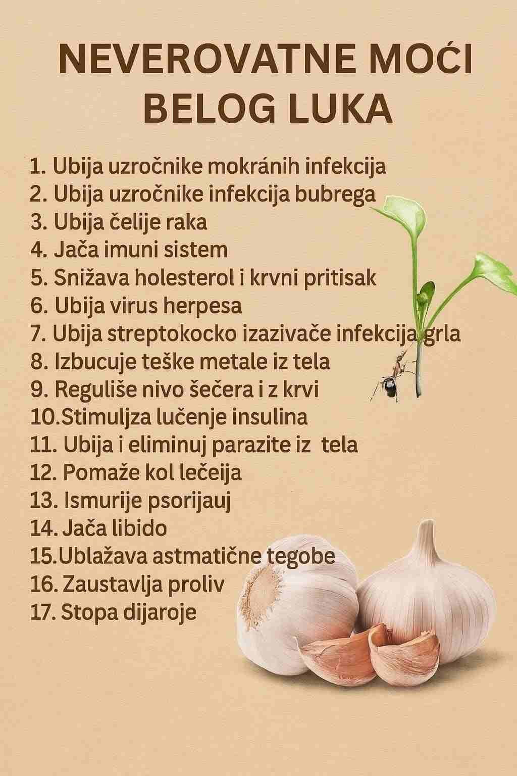 Beli luk je jednostavna, jeftina i izuzetno moćna biljka koju bi svako trebao imati u svojoj prehrani. Bilo da se koristi svjež, u čaju ili kao dodatak jelima, on predstavlja čudesan prirodni lijek za jačanje zdravlja i prevenciju mnogih bolesti.