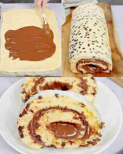 6. Ohladiti, premazati Nutellom i zarolati u roladu.