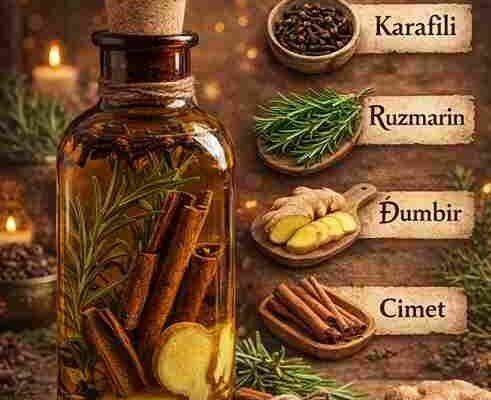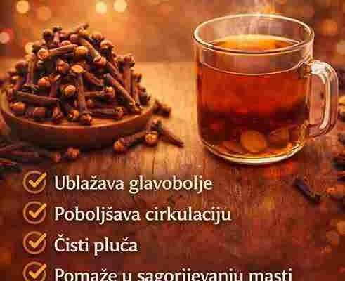 Ovaj prirodni eliksir stimuliše korijen kose, jača folikule i podstiče brži i zdraviji rast kose. Redovna upotreba čini kosu gušćom, sjajnijom i zdravijom. Sastojci 1 kašika klinčića 2 grančice svježeg ruzmarina (ili 1 kašika suhog) 1 komad đumbira (2–3 cm narezanog na kolutove) 1 grančica cimeta 2 šolje vode Priprema Stavite 2 šolje vode u…