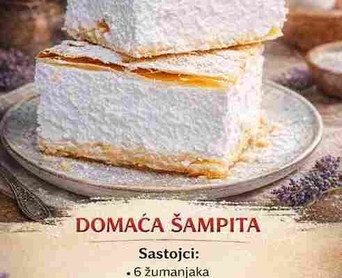 Zašto svi vole šampitu? Šampita je jedan od najpoznatijih domaćih kolača na Balkanu – lagana poput oblaka, slatka taman koliko treba i savršena uz kafu. Njena tajna je u prozračnoj pjeni od bjelanaca i tankoj podlozi koja sve drži zajedno. Iako izgleda kao da je iz slastičarne, možete je lako napraviti i kod kuće. Sastojci…