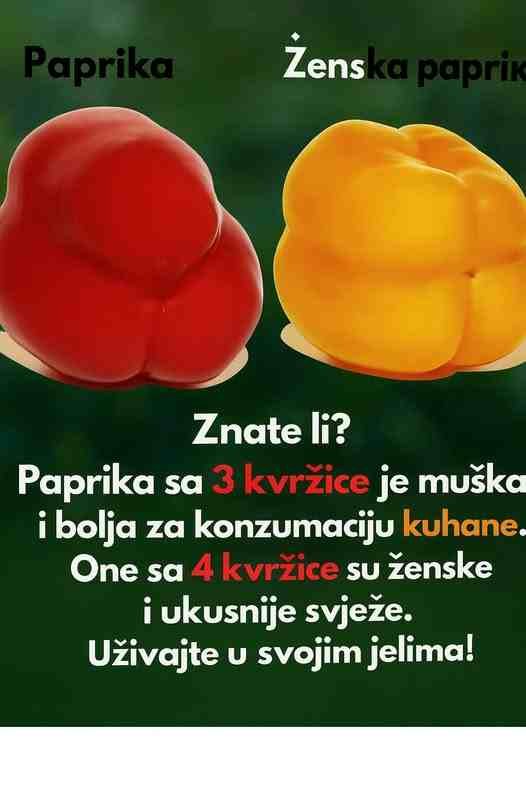 Jeste li ikada primijetili da neke paprike na dnu imaju tri, a neke četiri ispupčenja (kvrge)? Ova mala razlika zapravo otkriva mnogo više nego što mislite. Ljubitelji povrća i vrtlari često vjeruju da oblik paprike može otkriti njenu teksturu, ukus i najbolji način upotrebe u kuhinji. Iako ova podjela nije naučno dokazana, mnogi tvrde da se razlike itekako primjećuju u praksi.