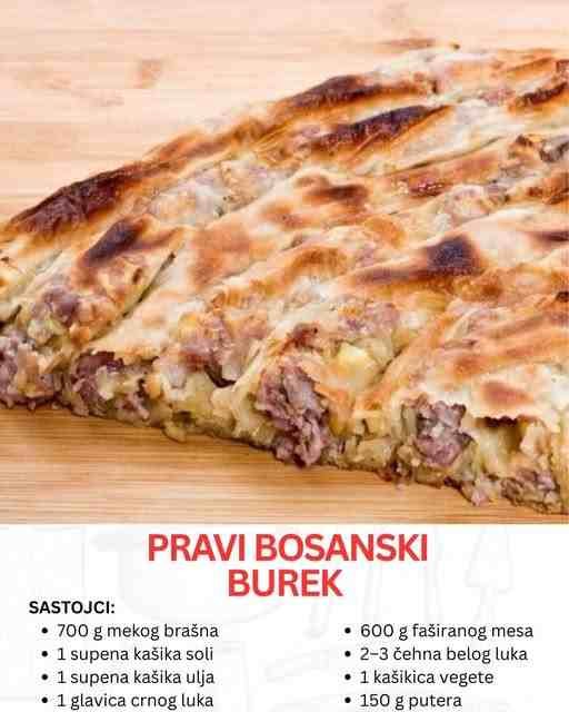 Napomena: Ukoliko želite još bogatiji ukus, možete umesto mlevenog koristiti sitno seckano meso – tada se burek zove sjeckani burek, i mnogi tvrde da je upravo to najbolja varijanta.