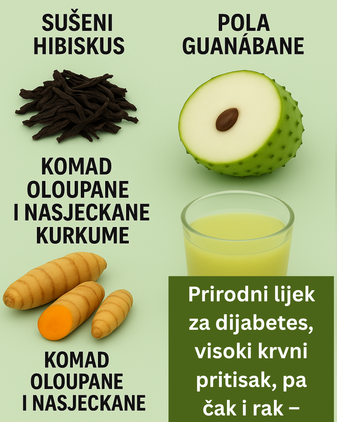 Ovaj članak istražuje jedan poseban recept koji privlači globalnu pažnju: kombinaciju sušenog hibiskusa, graviola (poznata i kao guanábana), svježe kurkume i vode. Zajedno, ovi sastojci čine osvježavajući, a snažan napitak. Iako ne zamjenjuje medicinski tretman, može služiti kao podrška općem zdravlju i dobrobiti. Pogledajmo nauku, tradiciju i stvarna iskustva iza ove prirodne mješavine za koju mnogi vjeruju da bi mogla transformisati zdravstvenu brigu u 2025. i nakon nje.