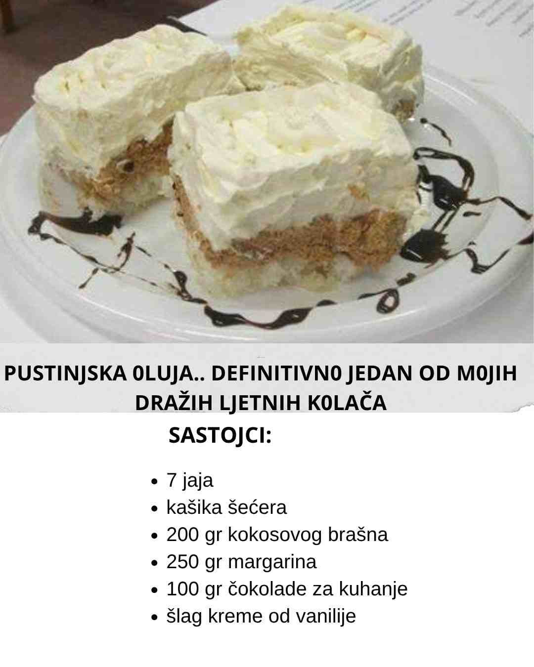 najbolje odmah isjeći na kocke. – Kolač staviti u frižider na 2/3 sata i onda je spreman