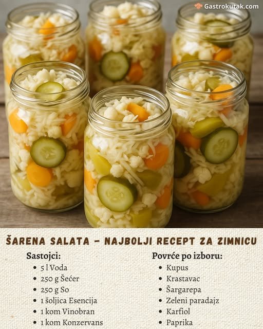- Skladištenje: Salata se može čuvati nekoliko mjeseci, a što duže stoji, to postaje ukusnija. Idealna je za upotrebu tokom zime kao prilog uz glavna jela.