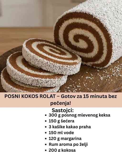 Mekan, nežan i savršeno kremast posni kokos rolat – gotov za 15 minuta bez pečenja!
