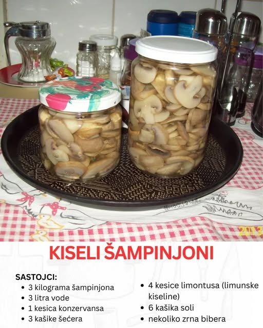 Kada se govori o zimnici, većina ljudi prvo pomisli na krastavce, paprike ili možda na dobro poznatu šarenu salatu. Međutim, postoji jedan specijalitet koji sve više dobija na popularnosti među domaćicama i ljubiteljima kuhinje – to su kiseli šampinjoni. Njihova prednost je što su jednostavni za pripremu, mogu se čuvati duže vreme, a ukus im ostaje gotovo identičan onima koje kupujemo u marketima.