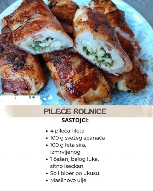 Pileće rolnice sa fetom i spanaćem savršen su spoj sočnog pilećeg mesa, kremastog feta sira i osvežavajućeg spanaća, sve zajedno umotano u hrskavu koru.