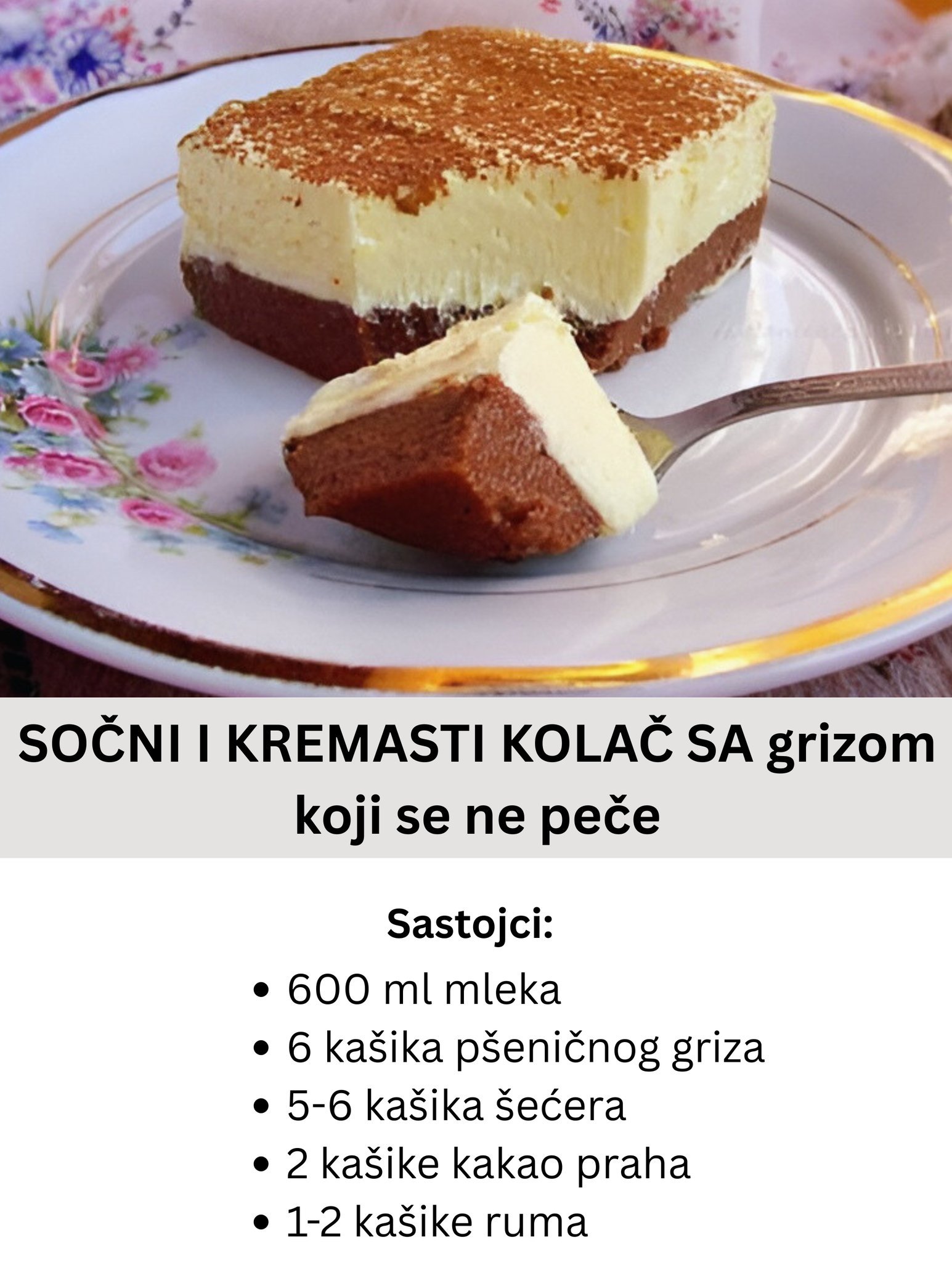 Dobijeni krem rasporediti preko ohlađene podloge od griza i poravnati.
