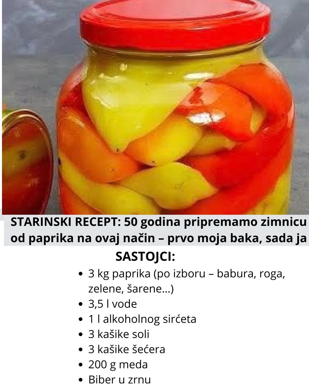 Recept za zimnicu od paprika na starinski način. Onako kako su zimnicu spremale naše bake. Bez hemije i konzervansa.