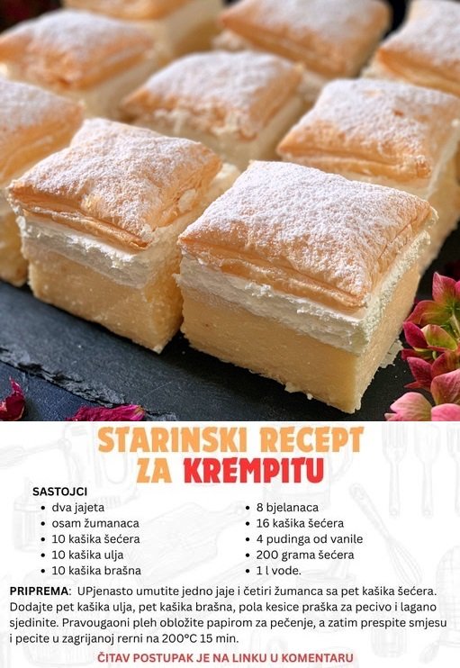 Ako tražite dezert koji nosi emociju, sećanje i izvanredan ukus – ovo je pravi izbor. Bez obzira da li je spremate za praznik, porodično okupljanje ili samo da biste sebi zasladili dan, ova krempita će sigurno ispuniti očekivanja.