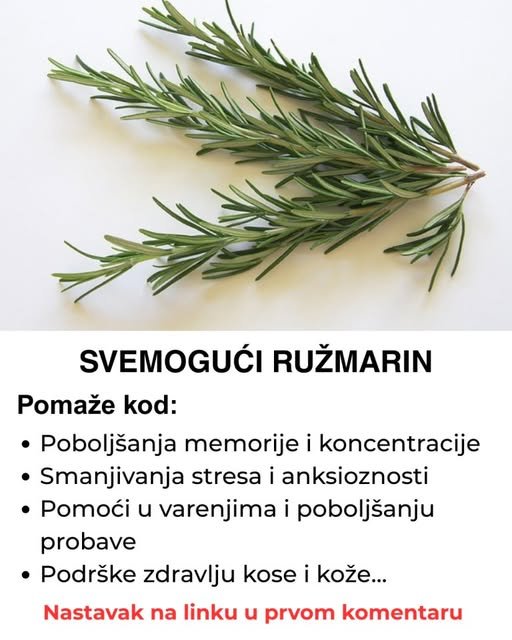 Ružmarin je moćna biljka koja se koristi ne samo u kulinarstvu, već i u zdravlju. Njegova svojstva poboljšavaju pamćenje, smanjuju stres, pomažu u varenju, podstiču rast kose, jačaju imunitet i smanjuju bolove i upale.