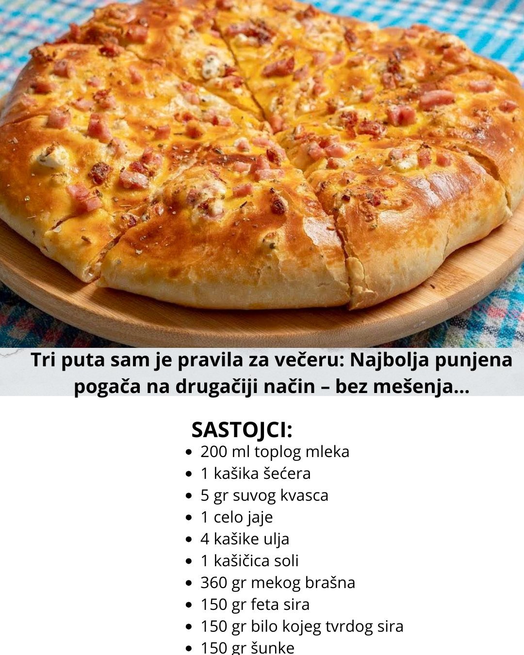 Tri puta sam je pravila za večeru: Najbolja punjena pogača na drugačiji način – bez mešenja…