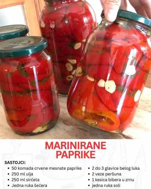 Marinirane paprike su idealan prilog mnogim jelima, od pečenja do salata, a često su i samostalna poslastica za one koji vole blago kisele i aromatične ukuse. Ono što ovaj recept čini posebnim jeste njegova jednostavnost i prirodnost, kao i činjenica da ne zahteva složene sastojke niti dugotrajne procedure.