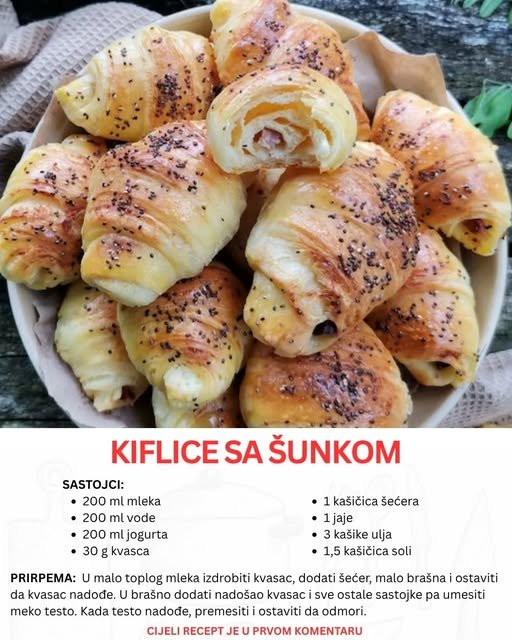 Isprobajte ovaj recept za sledeći doručak ili užinu, i sigurno ćete uživati u svakom zalogaju. Uz malo truda i pravilan postupak, domaće kiflice sa šunkom mogu postati vaš omiljeni domaći specijalitet koji ćete često praviti i deliti sa porodicom i prijateljima.