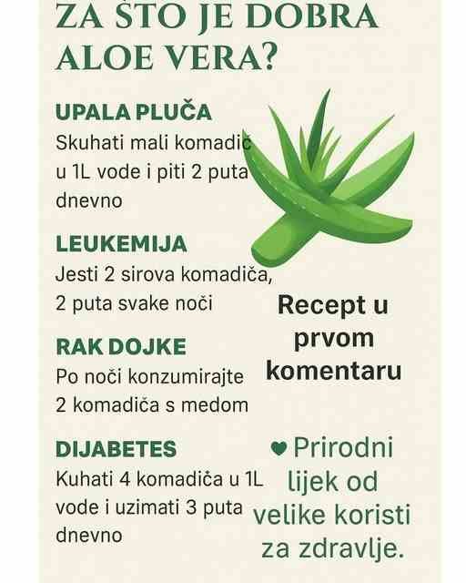 Osim toga, postoji još jedno rješenje, a to je aloe vera. Aloe vera može pomoći da popravite vid ili da spriječite dalji rast dioptrije. Aloe vera vam može pomoći i kod problema sa probavnim traktom, ali i kožnim problemima.